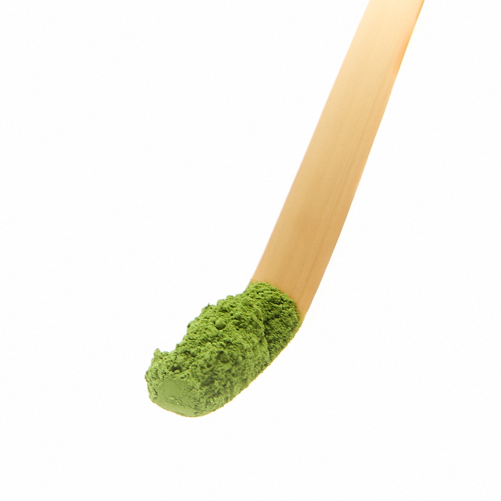 del té donde su forma curva permite recoger 1g de matcha con precisión y delicadeza, para